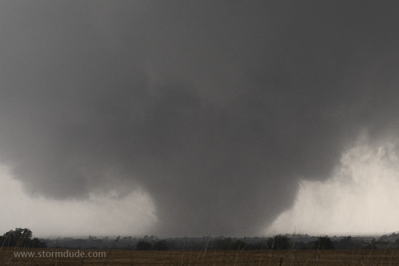 Looking back at the tornado after it crosses Northwest Expressway. The tornado travels a total of 65 miles, from near Hinton to just northeast of Guthrie.